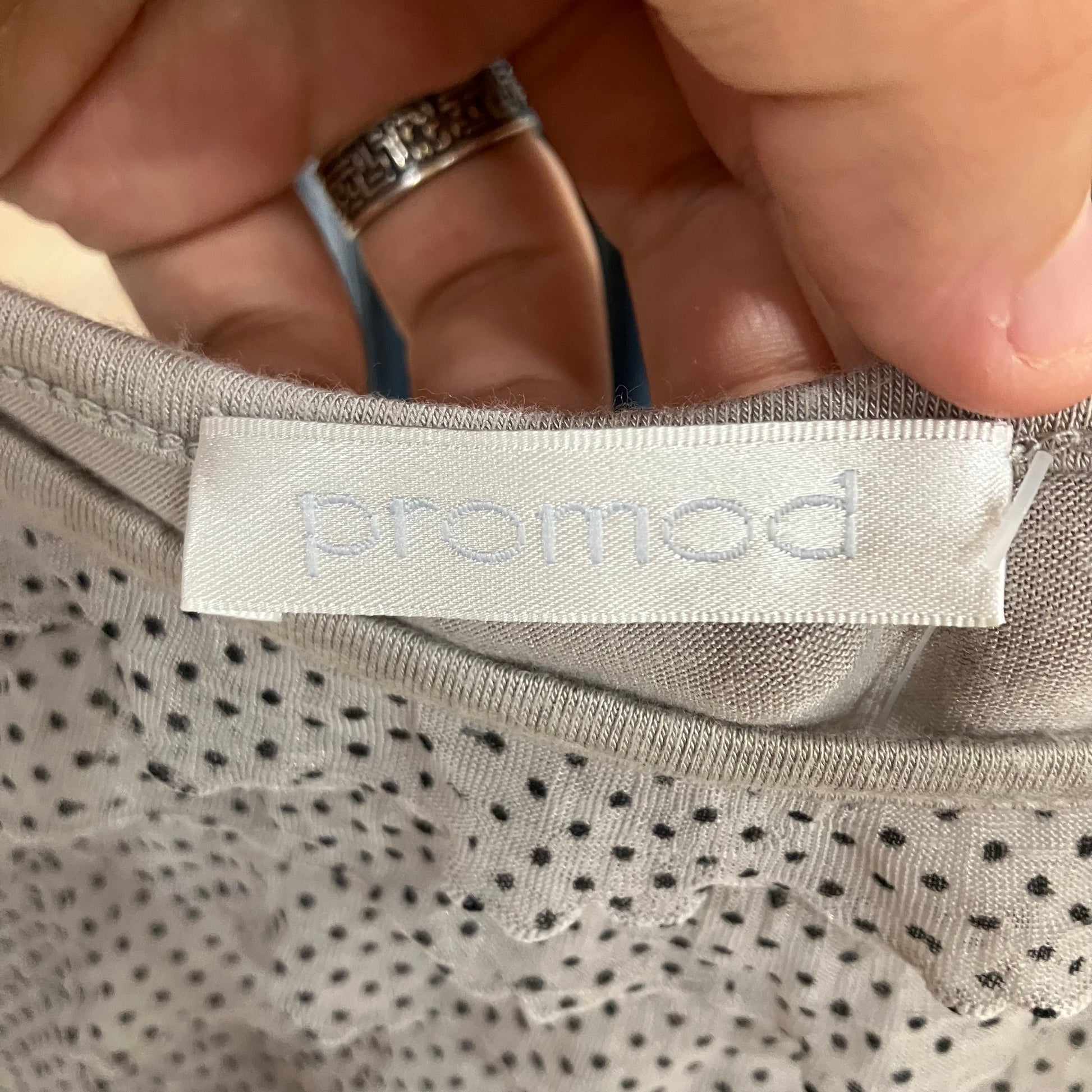 promod beige frilled cami top with mini black polka dots