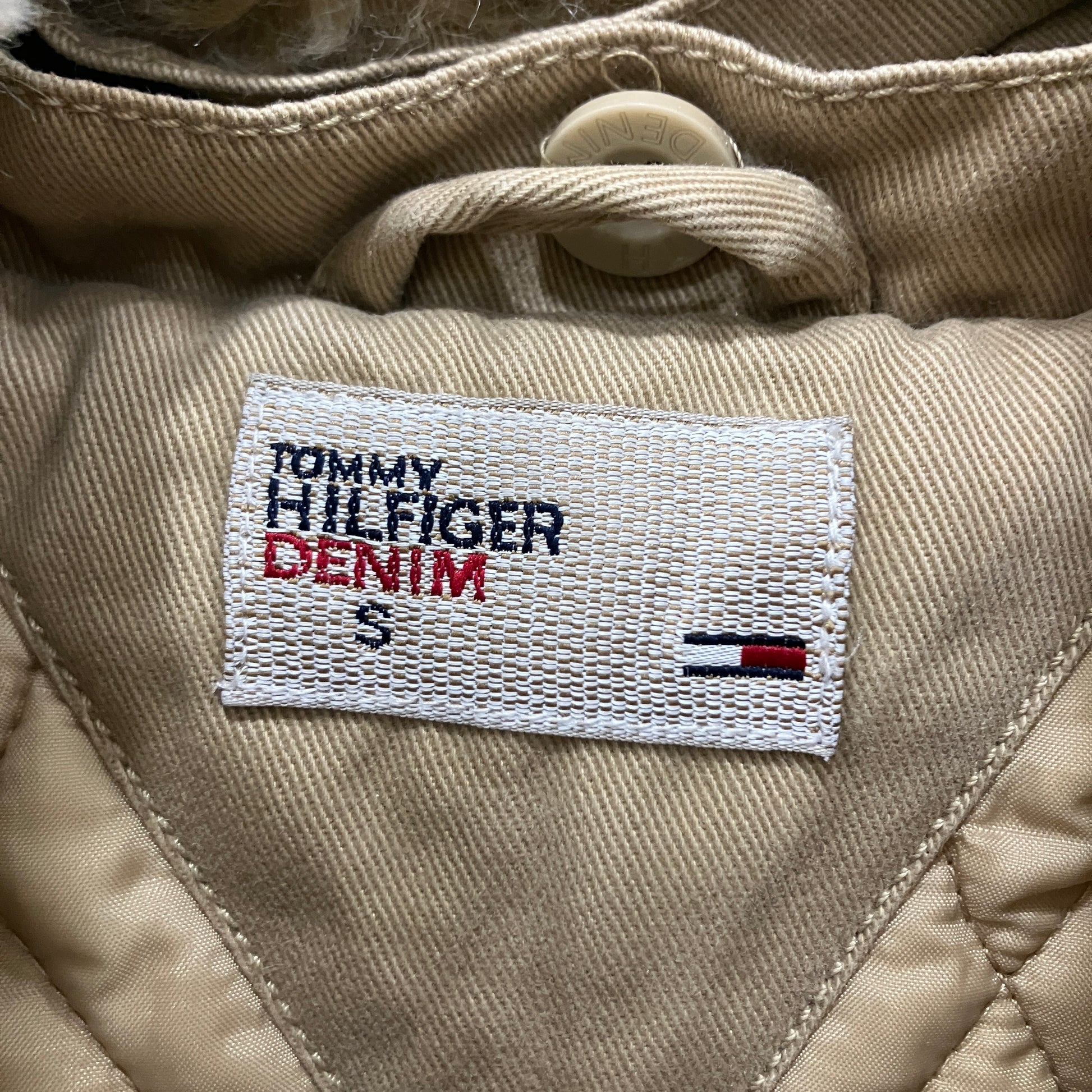 tommy hilfiger 00s beige parka coat with faux fur hood